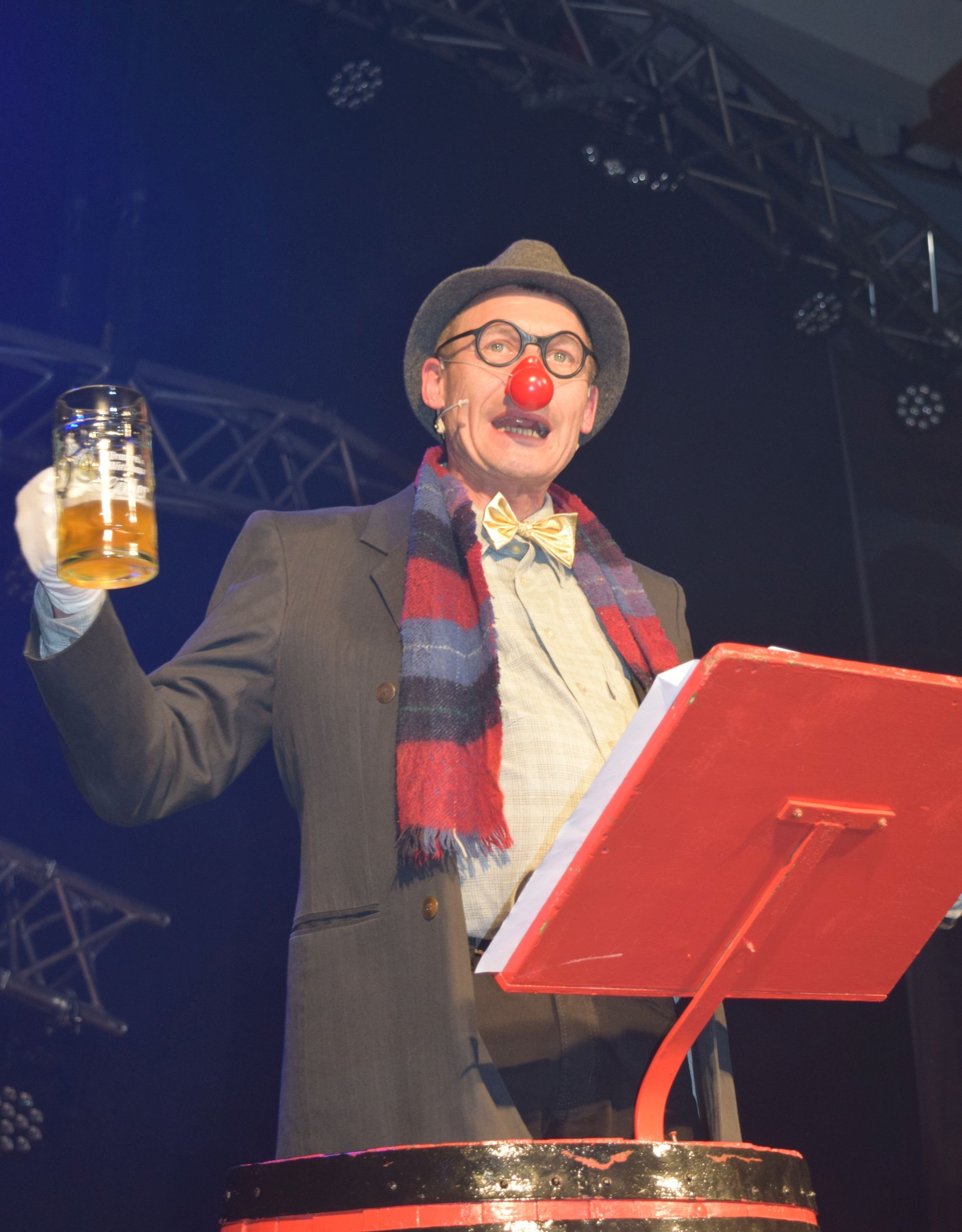Vom Zoff mit seiner „Fraa“ musste ein alter Bekannter berichten. Eigentlich wollte Franz Branntwein nur zwei Bier trinken und um Elf daheim sein. Als es dann elf Bier waren und 2 Uhr früh, wartete seine bessere Hälfte mal wieder mit dem Nudelholz und seine Laune war im Keller („da kann sie mir ja gleich ein Bier mit hochbringen!“). Er lässt sich keinen Bockbieranstich entgehen, deshalb freut er sich nicht auf sein trautes Heim, sondern traut sich nicht mehr Heim. Pfarrer Marianus Schramm aus Litzendorf glänzte mit teils deftigem, teils tiefsinnigem Humor in seiner Paraderolle.